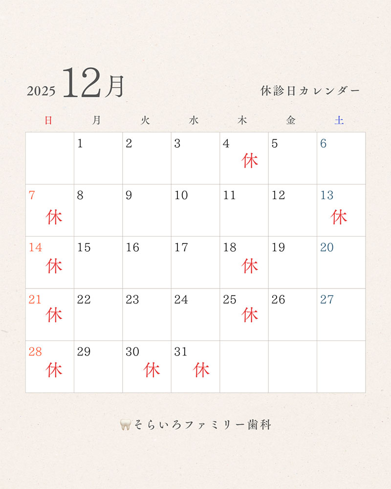 12月休診日のお知らせ